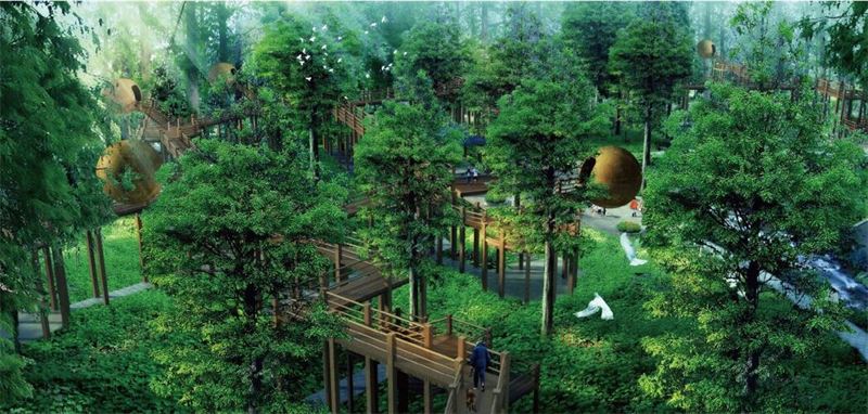 設(shè)計(jì)說(shuō)明:此項(xiàng)目為迷你牧場(chǎng)的一個(gè)子項(xiàng)目,主打森林拓展,親子游客可在此享受到穿梭在森林中的游客體驗(yàn)。